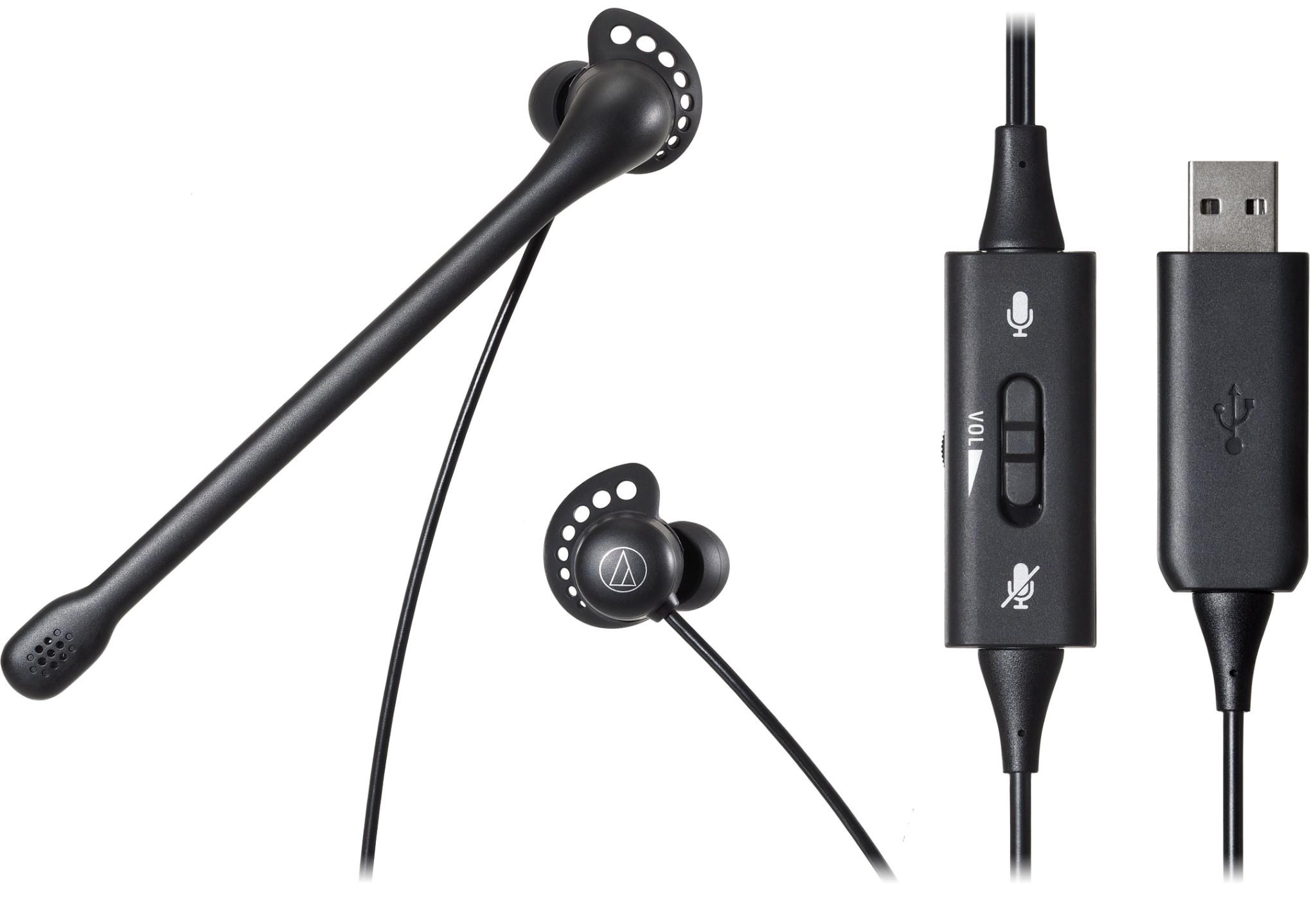 Are you over wearing a headset while at work? The new ATH-202USB combines a comfortable inner-ear design with a high-quality noise-cancelling microphone. delivering clear. articulate audio in an unobtrusive design.Â