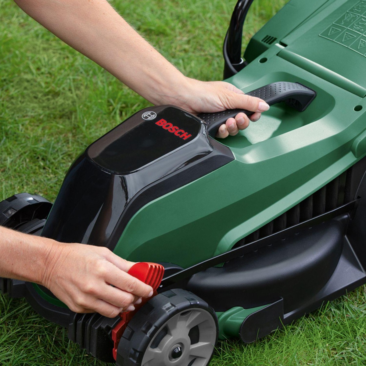 • Easily adjusted cutting height: simply set grass length between 30 – 60 mm with 3 different settings