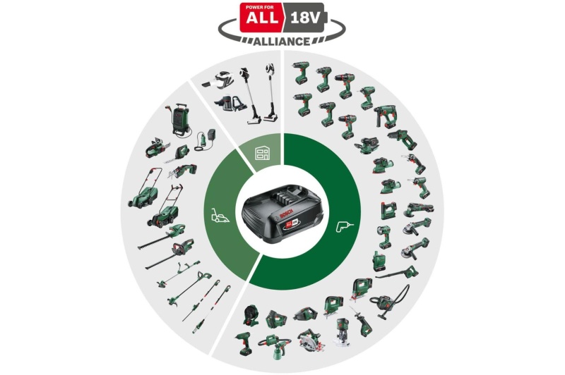 • POWER FOR ALL 18V: The battery supplied is compatible with all tools within the Bosch Home & Garden 18V system