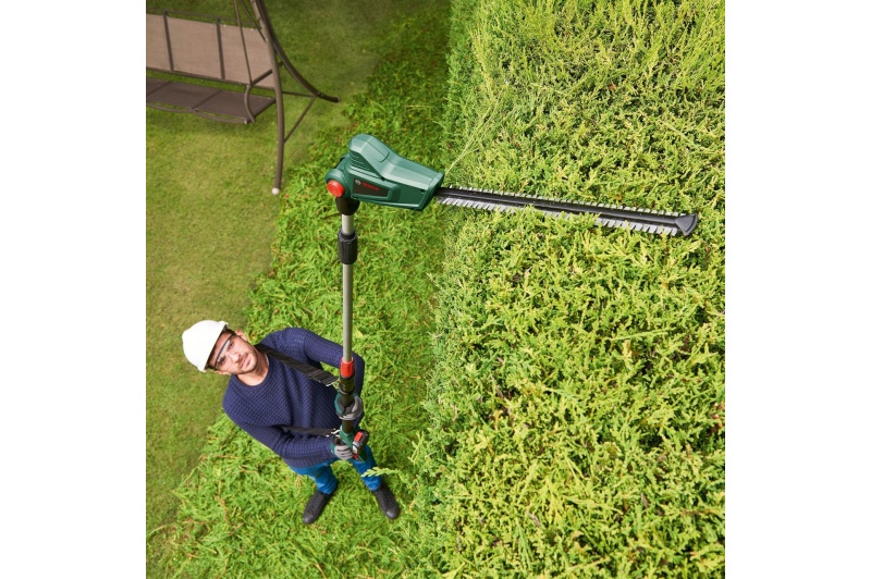 - Effortless hedge trimming at ground level without using a ladder thanks to the telescopic pole and pivoting head
