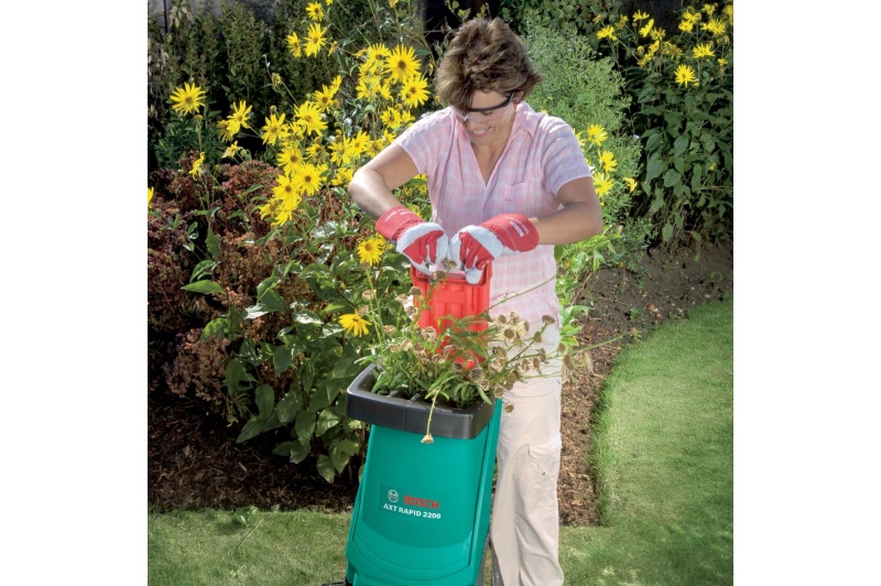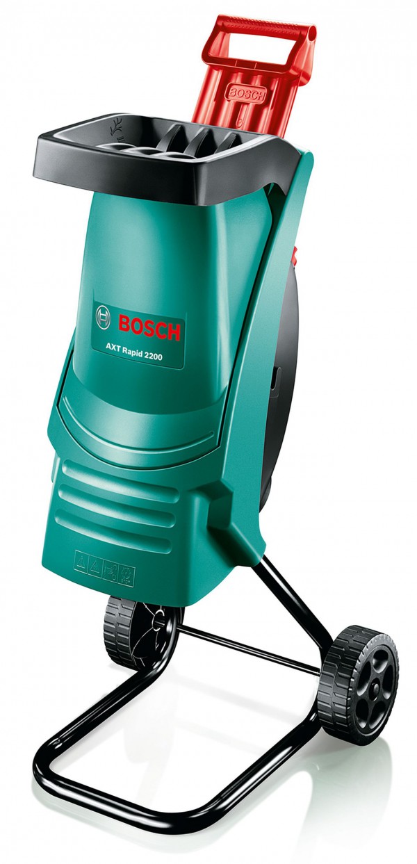 The Bosch AXT 2200 Rapid shredder is a fast and powerful shredder, perfect for green and soft material. Powered by a high speed 2200 watt Bosch ‘Powerdrive’ motor, it enables high material throughput. With its laser-cut precision blade, made from hardened steel, it provides excellent cutting performance of green or woody garden debris. Razor sharp – for excellent shredder performance.