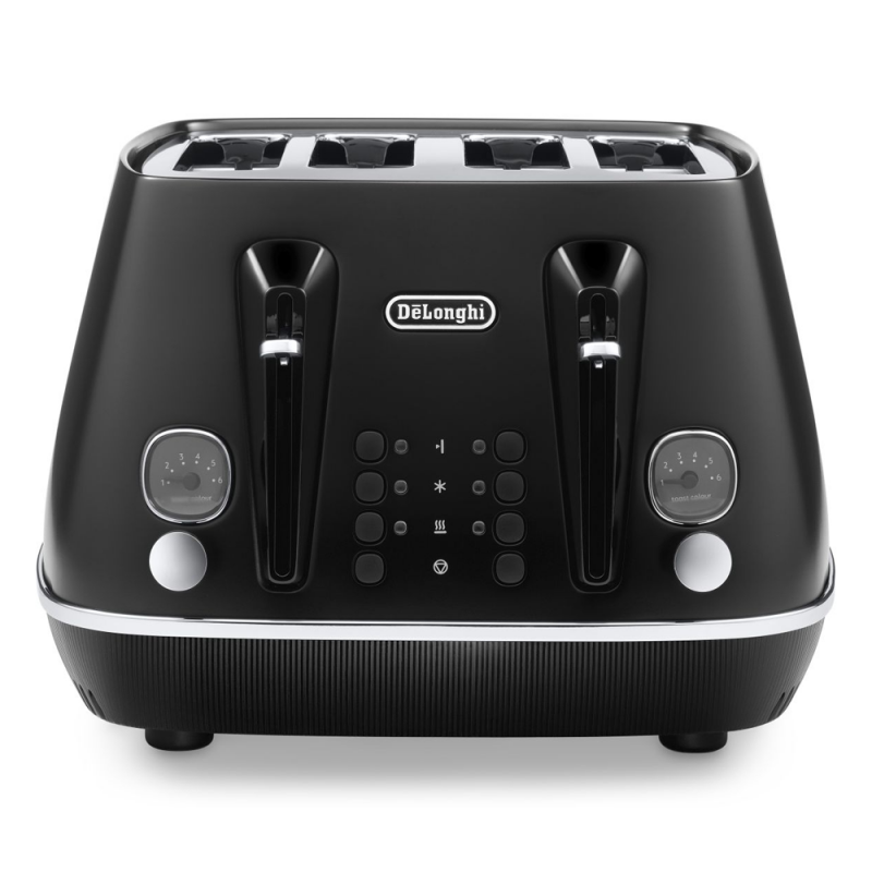 DeLonghi has launched Distinta Moments, the new elegant breakfast collection created for individuals with an appreciation for exquisite Italian style and the confidence to be expressive. Enjoy lavish homemade breakfasts, or late evening teas, Distinta Moments collection will turn your routine into moments to be cherished. * 1800W power * 4 toasting chambers * Independent and progressive electronic browning controls (6 levels) * Dedicated reheat, defrost, cancel and bagel settings * All functions with neon indicator * 2 removable crumb trays * Non-slip feet * Cord storage WHAT’S IN THE BOX: * 1x 4 Slice Toaster