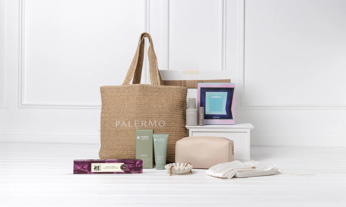 The second gift comes from the self-care and skincare experts at Endota, and it’s their Sleep & Restore gift pack. It features their Magnesium Mist, Sleep Sound Roll-On, Signature Blend Hand Therapy, and Mulberry Silk Pillowcase. They help support a restful night’s sleep and hydrate the skin. Mum can store her new beauty favourites in the blush pink cosmetic bag that’s also in the hamper, and there are some champagne truffles that will make her day sweeter. Happy Mother’s Day!