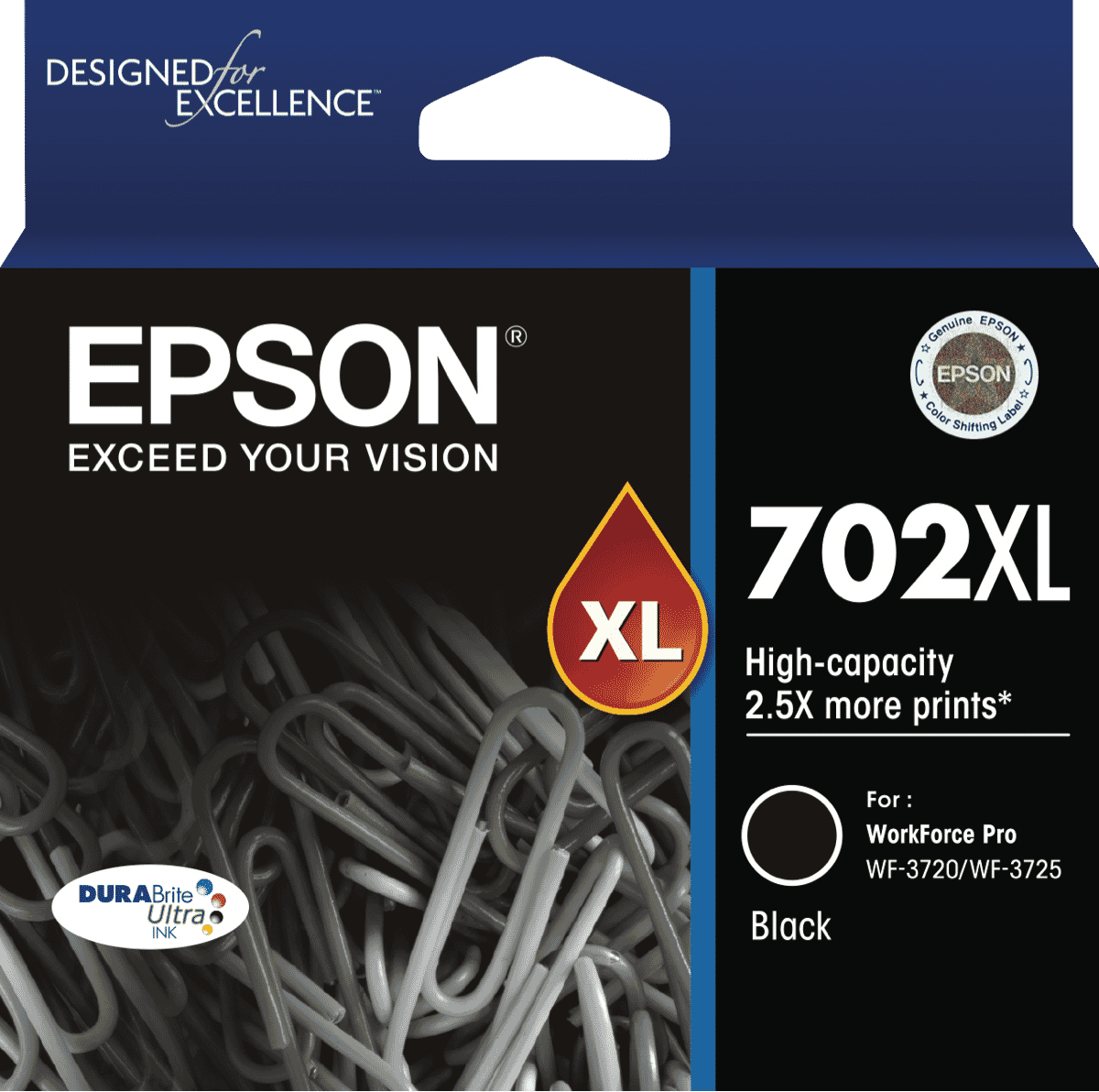 Featuring the exclusive Epson DURABrite Ultra Ink, a versatile pigment based four colour ink technology that delivers brilliant, ultra-sharp detail on plain and specialty papers. These fast drying inks deliver durable prints that are water, fade and smudge resistant, as well as highlighter friendly.