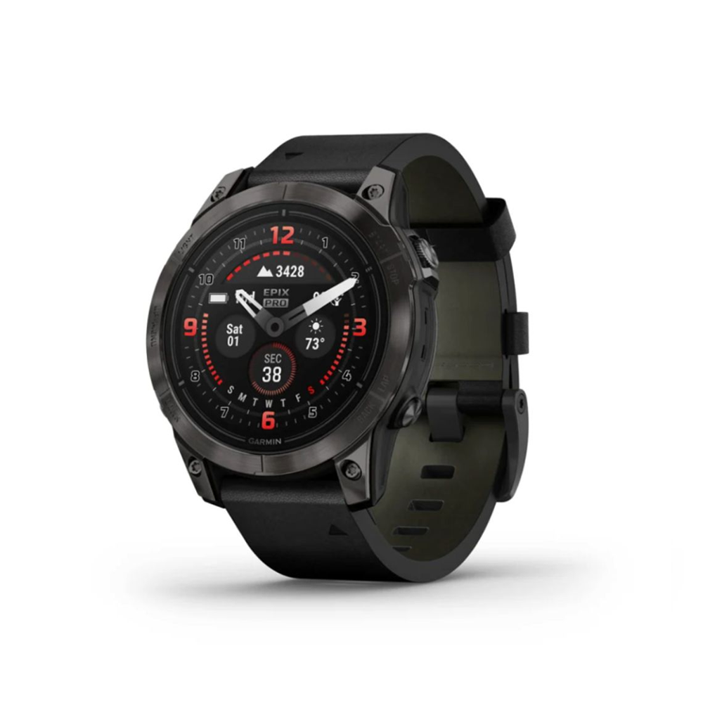 Garmin Epix Pro Gen2 47mm Sapphire – Grey Titanium with Black Leather Band
