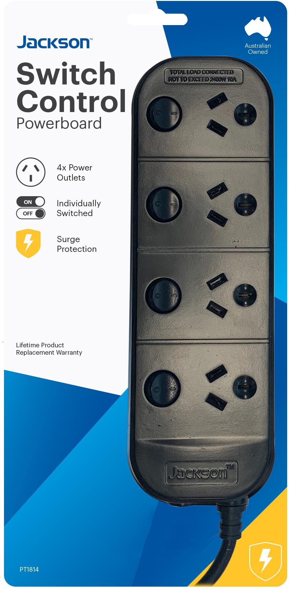 Jackson Surge Protected Board w/ 4 x Individual Switch Power Socket Outlets