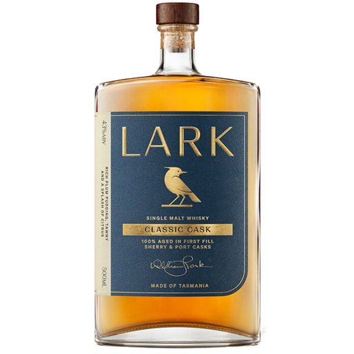 Lark Distillery Classic Cask Whisky is the signature expression from the pioneering Tasmanian distillery. The 500ml bottle delivers a harmonious single malt with a complex palate of butterscotch, rich caramel, sweet vanilla, and a smoky-peat background derived from the use of Tasmanian Peated Malt. It is an Australian whisky icon.