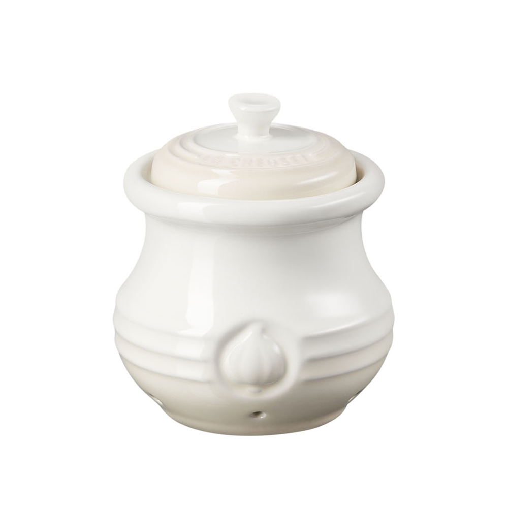 Store your garlic right where you need it. The Le Creuset Garlic Keeper is designed to provide just the right environment for taking care of your cloves. Holding three to four bulbs at a time, it features small vents to keep the air inside the jar dry. A secure lid keeps odours and flavour in.