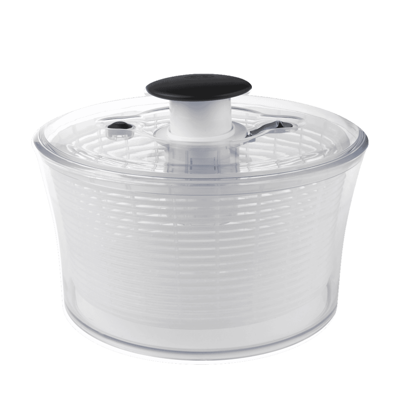 This clever OXO salad spinner is the easy way to achieve dry salad leaves and herbs. It has a patented one-handed pump mechanism, a brake button and a wide, non-slip base to keep it steady on the benchtop. The internal basket can also be used as a colander. BPA free and dishwasher safe for easy cleaning.