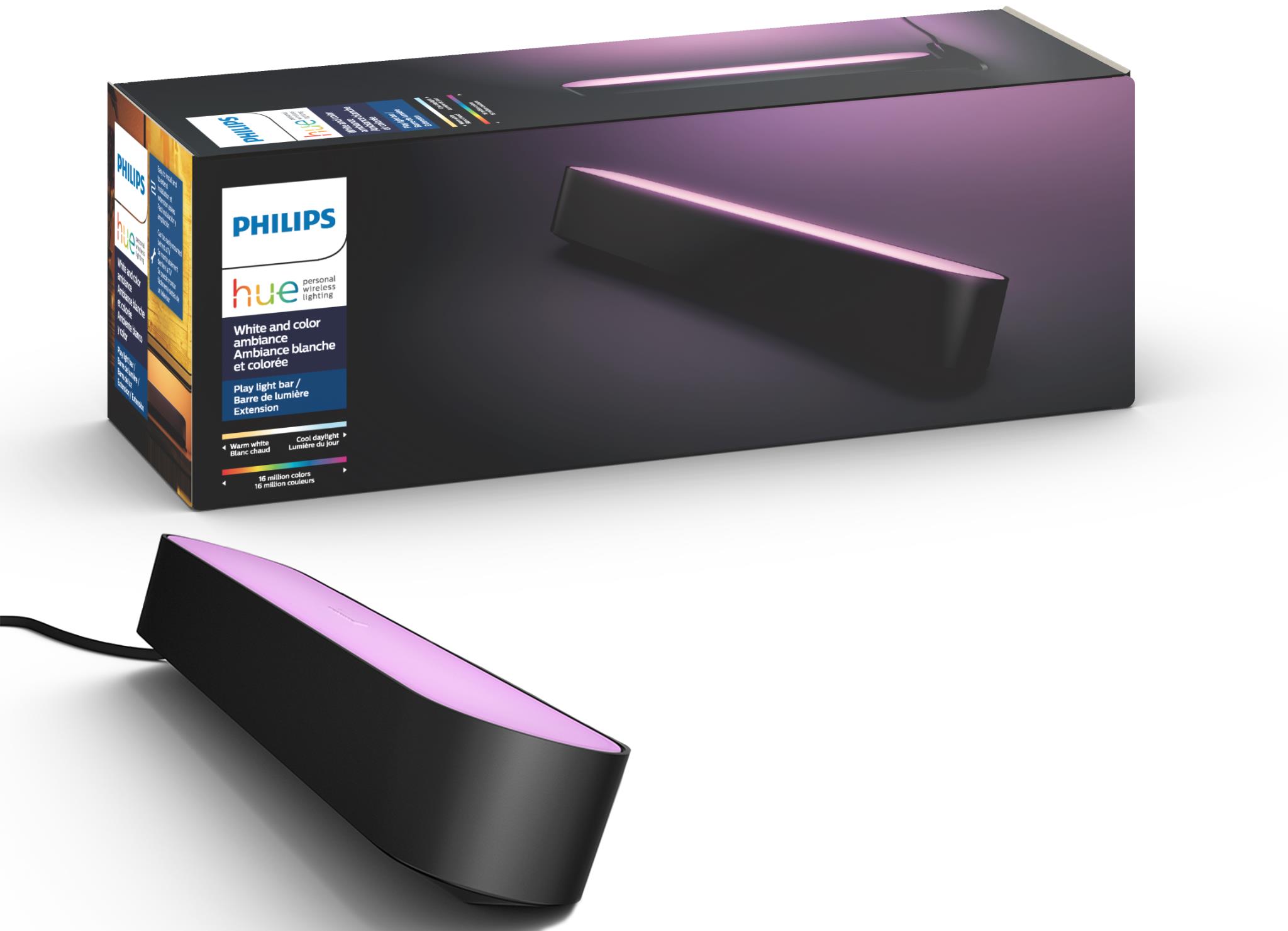 Hue Play won’t add to a jumble of wires behind your TV or hog too many outlets – you can connect three Hue Play smart light bars to the same power supply unit. leaving you more than enough room for all your other devices.