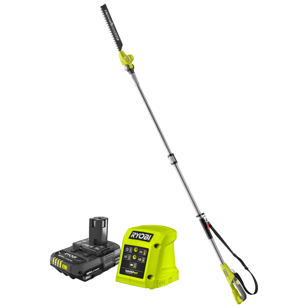 Trim tall hedges with ease using the RYOBI 18V ONE+ Pole Hedge Trimmer Kit. This kit includes an 18V 2.0Ah Battery and 18V 1.5A Charger.