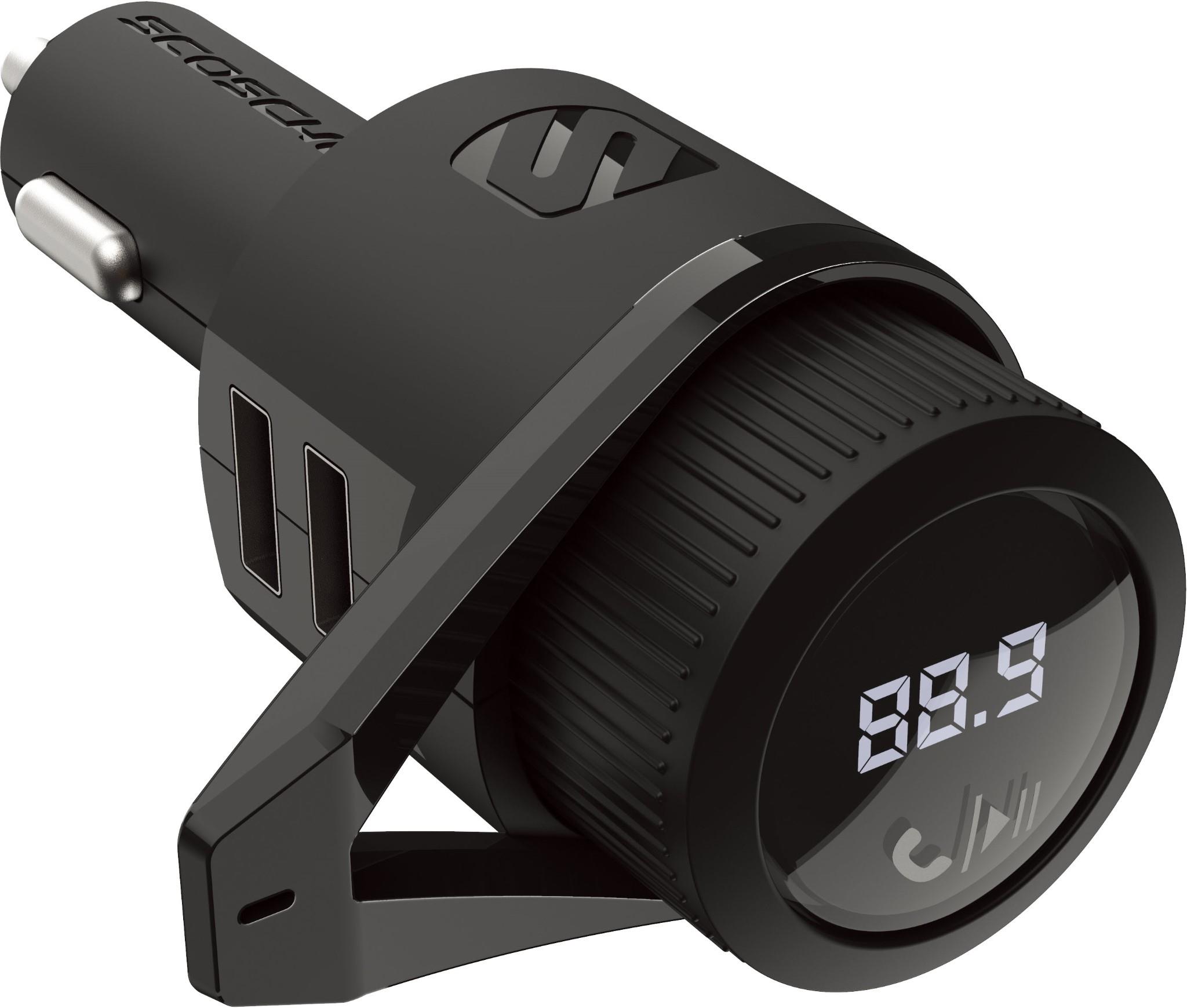 Transmit from your Scosche FM transmitter to the vehicle car Stereo to play music and hear phone calls