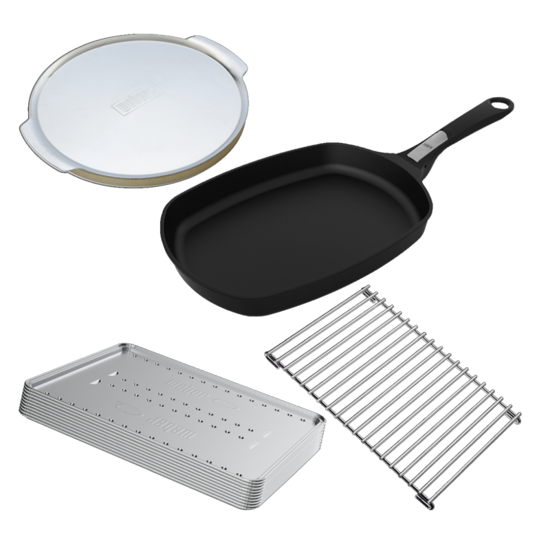 Explore a range of cooking possibilities with this starter pack for your Baby Q barbecue. This pack features a roasting trivet and 10 convection trays, a pizza stone with pizza tray and a frying pan with detachable handle – all specially designed and tested for use in your Baby Q barbecue.